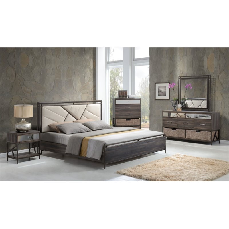 | ACME Furniture - Beds - 20950Q - The Adrianna collection is the perfect choice for your home. Features padded insert fabric headboard with it's warm walnut finish will bring a stylish contemporary look to your bedroom. Finish: Cream and Walnut; 3 Slats - Box Spring Required. Specifications:Overall Product Dimensions: 46.25 H x 63 W x 85.75 D; Product Weight: 108 lbs.
