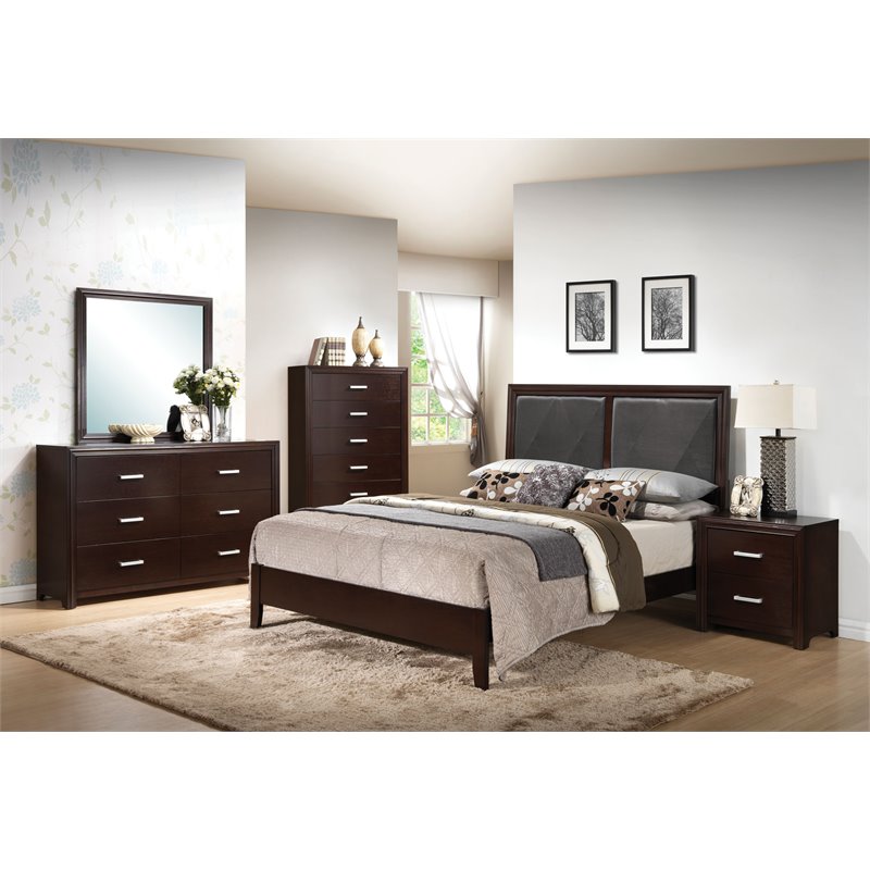 | ACME Furniture - Beds - 21420Q - The Ajay bedroom collection is crafted with selected hardwoods and espresso veneers. The bed features a padded headboard with a modern double insert of black PU and low profile footboard. All complemented with contemporary design and oversized cases. Finish: Black and EspressoWith 3 Slats - Box Spring RequiredSpecifications:Overall Product Dimensions: 51.65 H x 83.58 W x 63.07 DProduct Weight: 64 lbs