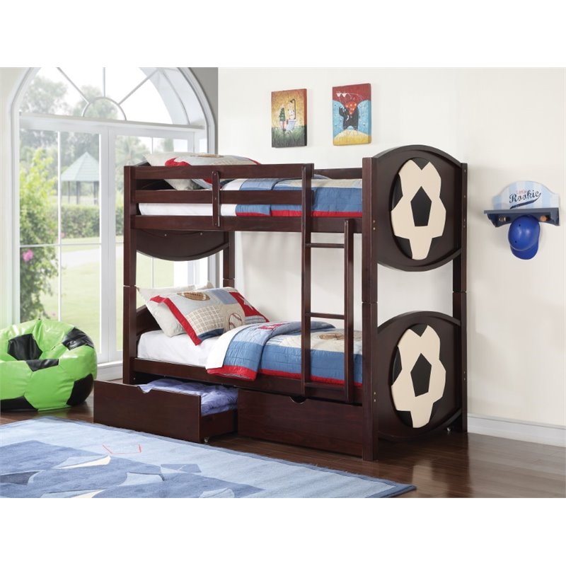| ACME All Star Soccer Twin over Twin Bunk Bed in Espresso |