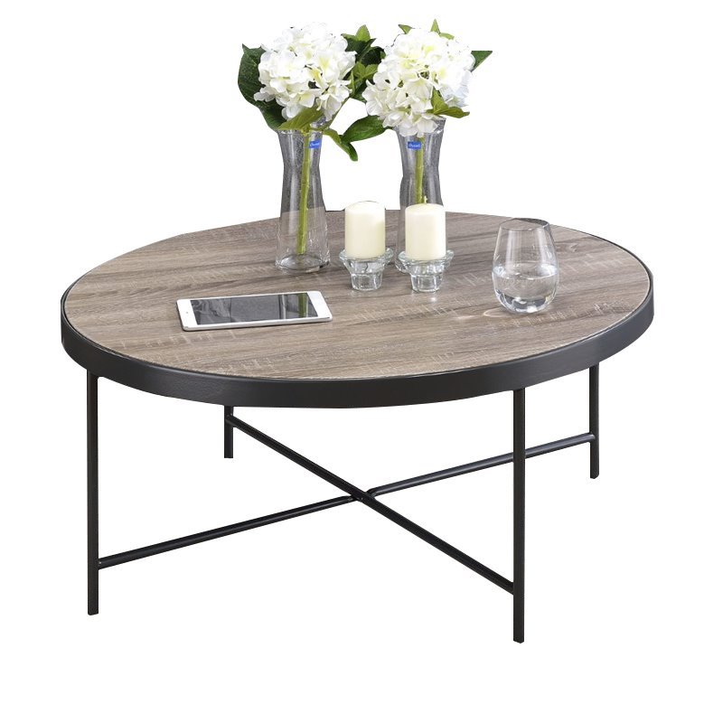 | ACME Furniture - Coffee Tables - 81735 - Express your hipness with stylish Industrial inspired Bage coffee table, its 32� Diameter Weathered Gray top is the perfect size for any living room space. Its banded edge gives it a solid look setting on the black metal legs and cross stretchers. Finish: Weathered Gray Oak Wooden TopWith Metal TrimMetal Legs BaseNo StorageX Crossbar SupportRound Coffee TableSpecifications:Overall Product Dimensions: 16 H x 32 W x 32 DProduct Weight: 14 lbs