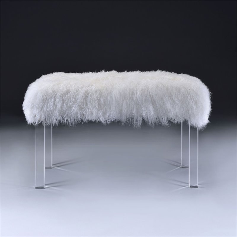 | ACME Furniture - Living Room Benches - 96505 - Unique in look and comfort, the Bagley bench, mixing pure white Tibetan wool and clear acrylic, offers a soft and luxe seating option or accent piece for any environment. This attractive bench wiil be the ideal additional seating space for either yourself or guests. Bring your home the trendiest piece and free yourself to seat on a cloud. Finish: Wool and Clear Acrylic Padded seatWool cushionAcryclic Legs: Clear finishRectangular benchSpecifications:Overall Product Dimensions: 20 H x 36 W x 16 DProduct Weight: 26 lbs
