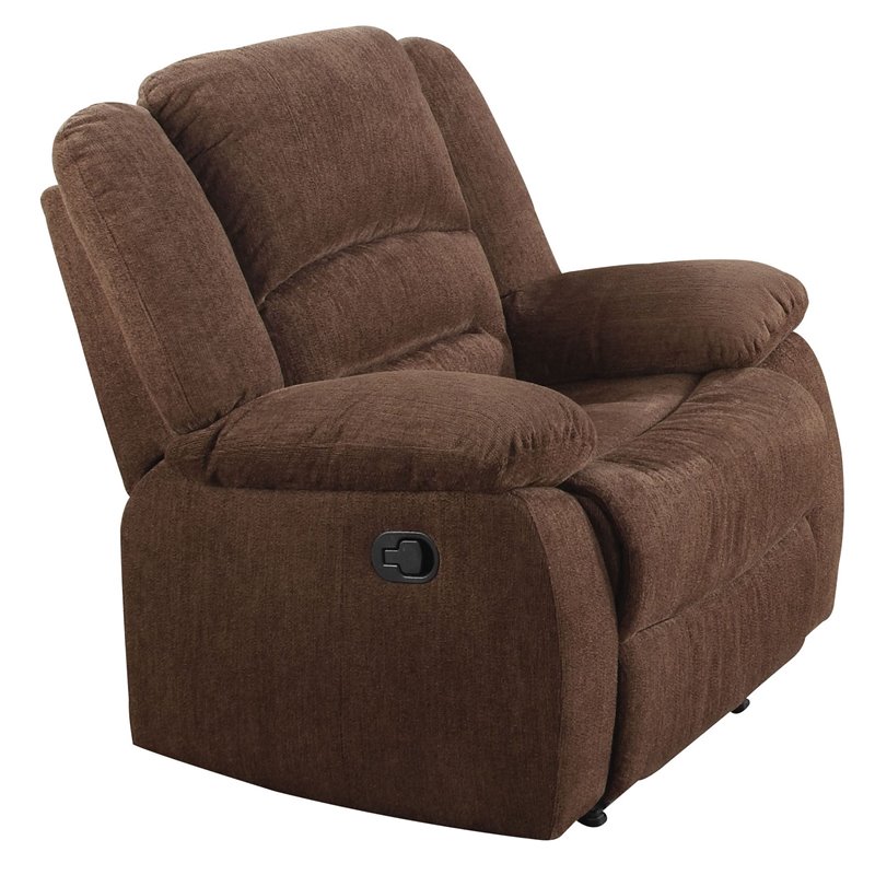 | ACME Furniture - Recliners - 51027 - The Bailey rocker recliner offers comfort, style and value for any home. A smooth chenille or velvet upholstery provides relaxation from head to toe with an easy to reach external latch handle for operating the reclining mechanism. This is the great one that you can't miss. Finish: Dark BrownMaterials: Chenille, Wood Frame, Foam, Metal, FoamContemporaryPocket Coil SeatingTight Back and Seat CushionSpecifications:Overall Product Dimensions: 40 H x 39 W x 38 DProduct Weight: 95 lbsSeat Depth: 20Seat Height: 21Weight Capacity: 300 lbs1.6 Density Foam