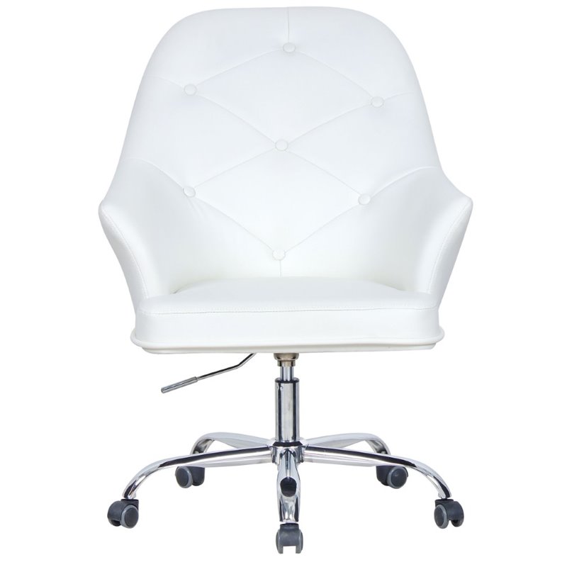 | ACME Furniture - Office Chairs - 92294 - The Bella office chair is ideal for any casual or professional working area, providing a comfortable support with a cozy and convenient design. Carefully crafted in white faux fur, features button tufted backrest design, flared armrests, adjustable lift seat, and is complemented by five-star base with casters for easy mobility. Finish: WhiteMaterials: PU, Foam, Metal Tube, Chrome Legs, Faux FurContemporarySwivelAdjustable HeightGas LiftSpecifications:Overall Product Dimensions: 35-38 H x 26 W x 29 DProduct Weight: 23 lbsSeat Depth: 18Seat Height: 17 - 20Weight Capacity: 300 lbs