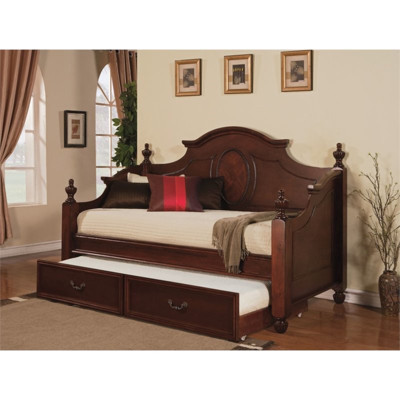 | ACME Furniture - Daybeds - 11850 - Classique daybed in cherry with optional trundle, perfect for a sitting room or guest bedroom. The daybed will add a stylish look to any bedroom. The trundle is the perfect space saving solution or an option for an extra mattress. This gorgeous bed features rich deep espresso finish and round drop in the legs. Finish: CherryMaterials: Pine Wood, MDFContemporaryBox Spring Not RequiredSpecifications:Overall Product Dimensions: 56 H x 83 W x 43 DProduct Weight: 156 lbs