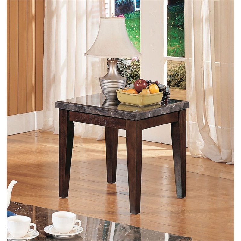 | ACME Furniture - End Tables - 07143B - The Danville transitional occasional tables will blend masterfully in your living room. Reflects selected marble stone top and wooden tapered legs. Optional TV Stand with matching marble top and media compartments will make the perfect finishing touch. Finish: Black and WalnutMaterial: China Marble, MDF, Birch Veneer, Hardwood, Pine WoodKD, Marble TopSquare Leg Table (No Shelf, No drawers)Top: Black Marble With Ply: 1-3/8HPlain ApronSpecifications:Overall Product Dimensions: 23 H x 24 W x 22 DProduct Weight: 48 lbs