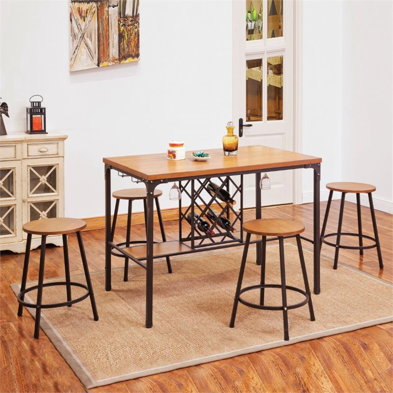 | ACME Furniture - Dining Tables - 72285 - The Dora counter height table is a great addition to any small dining area and its function speaks to the wine enthusiasts with its under top stem ware hangers and bottle rack/display, along with 2 flanking shelf surfaces. This industrial era inspired gathering height table and stools has the eye catching combination of black metal and medium brown oak wood top. The table features riveted corner brackets, true to its style. Finish: Oak With Wine Rack With Bottle and Glass Holder Wooden TopBase with 2 Wooden ShelvesMetal Square LegRectangular Leg Table with StorageSpecifications:Overall Product Dimensions: 36 H x 48 W x 30 DProduct Weight: 57 lbs