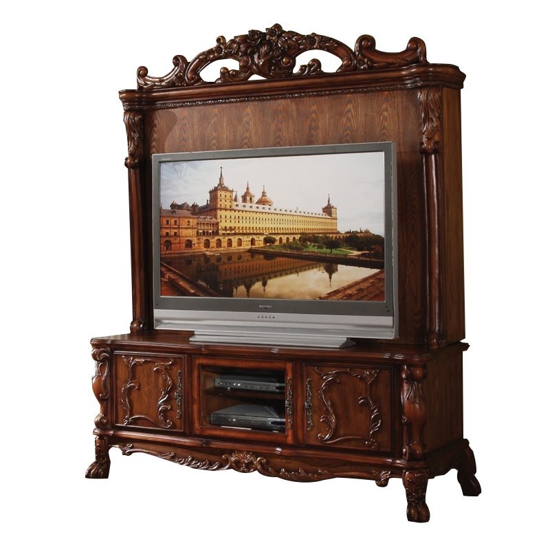 | ACME Furniture - Entertainment Centers - 12163 - The Dresden traditional reflects highly decorative details, oversized crown, claw feet and decorative carving inlay veneers on doors. This collection will be the showpiece of your living room environment. Finish: Cherry OakMaterial: MDF, Wood Leg, Poly DecorationEnt. CenterRecommended 60 TV SizeSpecifications:Overall Product Dimensions: 81 H x 66 W x 23 DProduct Weight: 336 lbs