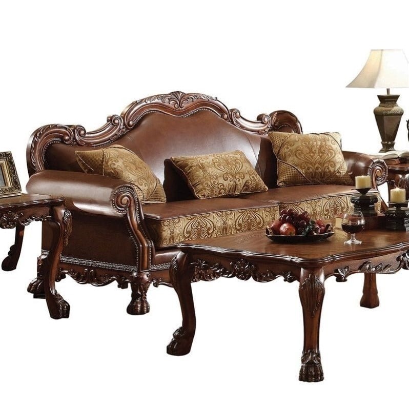 | ACME Furniture - Sofas - 15160 - The Dresden traditional collection has decorative carving, inlay veneers, ball and claw feet perfectly suitable for any room environment.Finish: BrownPU UpholsteryLoose seat cushionsTight back cushionsIncludes 3 pillowsRolled sofa armsSpecifications:Overall Product Dimensions: 43 H x 87 W x 42 DOverall Product Weight: 170 lbs