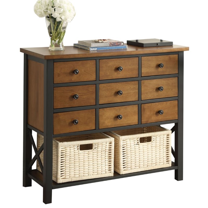 | ACME Furniture - Console Tables - 97175 - Rich in finish, big on storage, the Fidella console table and rack collection will be idea for any entryway or dining room, keeping your living areas tidy. This collection features black frame matching with a nice warm oak finish. You may choose from the various combination of drawers, baskets and shelves, in order to meet your needs. Finish: Black, OakMaterials: Iron, Pawlonia WoodContemporaryStorageSpecifications:Overall Product Dimensions: 34 H x 40 W x 16 DProduct Weight: 82 lbs