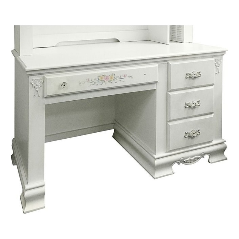 | ACME Furniture - Computer Desks - 01687 - The Flora bedroom features beautiful floral motif decals, oval rope molding and decorative profiled crown molding on all cases. This beautiful girl bedroom is perfect for your favorite princess. Finish: WhiteMaterial: Poplar Wood (Solid)Center Wooden Glide, DT: French Front, Felt Lined Top DrawerSpecifications:Overall Product Dimensions: 30 H x 52 W x 24 DProduct Weight: 121 lbs