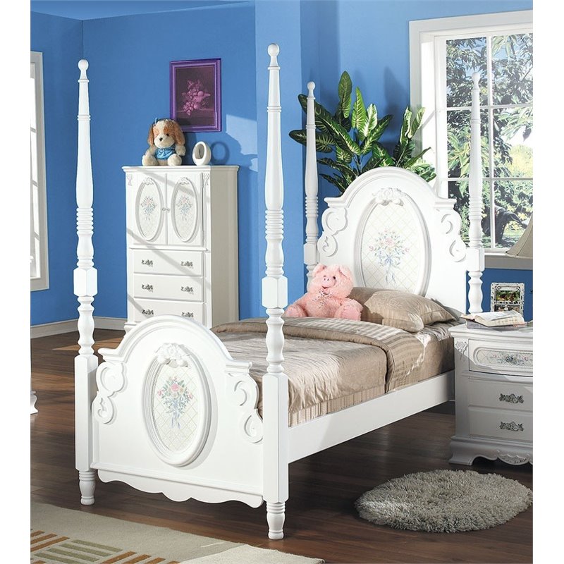 | ACME Furniture - Beds - 01657F - The Flora bedroom features beautiful floral motif decals, oval rope molding and decorative profiled crown molding on all cases. This beautiful girl bedroom is perfect for your favorite princess. Finish: WhiteWith 3 Slats - Box Spring RequiredSpecifications:Overall Product Dimensions: 78 H x 76 W x 57 DProduct Weight: 145 lbs