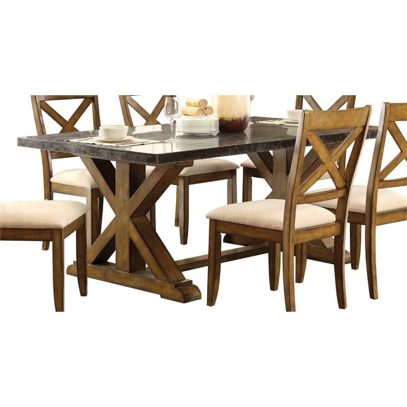 | ACME Furniture - Dining Tables - 62060 - Creating a fantastic dinging area in your home will no longer be a dream with this warmer Franklin collection. The rectangular limestone marble top of the table add charm and style to the table. The X shape design on the seat back, table base and the panel details of the server makes the set looks fantastic nice, this Franklin collection will bring your dining room a stylish contemporary look. Finish: Antique OakMaterials: Limestone Marble, PineContemporaryRectangular TableTrestle BaseSpecifications:Overall Product Dimensions: 31 H x 70 W x 42 DProduct Weight: 114 lbs