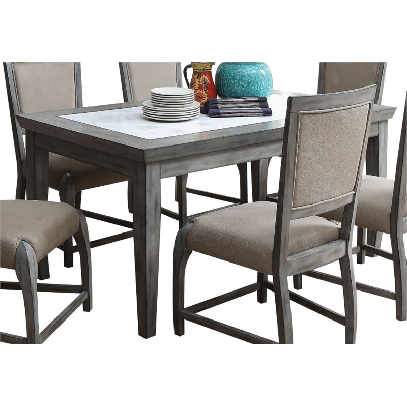 | ACME Furniture - Dining Tables - 72115 - The Freira collection features a rectangular leg table and side chairs with wooden backrest trim and wooden tapered legs. This dinning room set will make your dinning area full with a fashionable style. Finish: Antique GrayMaterials: Marble, Rubber Wood, Veneer, MDFContemporarySpecifications:Overall Product Dimensions: 31 H x 64 W x 38 DProduct Weight: 129 lbs