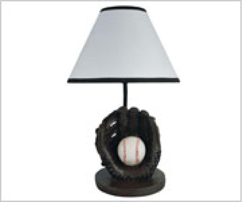 Bring a sporty look to any decor with these Baseball Table Lamps featuring a baseball mitt and a ball base and a tapered shade in white. The lamps are perfect for an athlete's bedroom or to enhance a game room or rec room. Baseball fans will love this sporty lamp set featuring game design elements. The lamps can also be perfect gifts for boys or sportsmen. Features