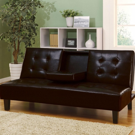 Sit back and relax with this Barron Espresso Bycast Adjustable Sofa with Cup Holder - Acme Furniture. It displays contemporary design espresso bycast leather with button tufted cushions. This adjustable sofa serves as a comfortable seating solution by day but it can be converted into a bed for your overnight guests. It also features a flip down back that has two cup holders. Features