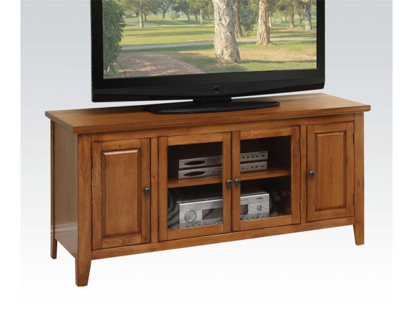 This Acme Christella TV stand Collection is made of select hardwoods and veneers in oak finish.It features two cabinet for more storage space.In the middle of the topthere are two shelves with glass door outside for CD players.Durable construction.The collection will be perfect for a guest room or master bedroom! Features