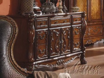 The Dresden Traditional Dresser in Cherry Oak - Acme Furniture will make a bold statement in your master bedroom with a warm finish Old World classic design and luxurious accents. Dresser features solid hardwood with multiple drawers and doors for storage with coordinating carvings. The drawers feature dove tail construction and are decorated with antique brass hardware. Features