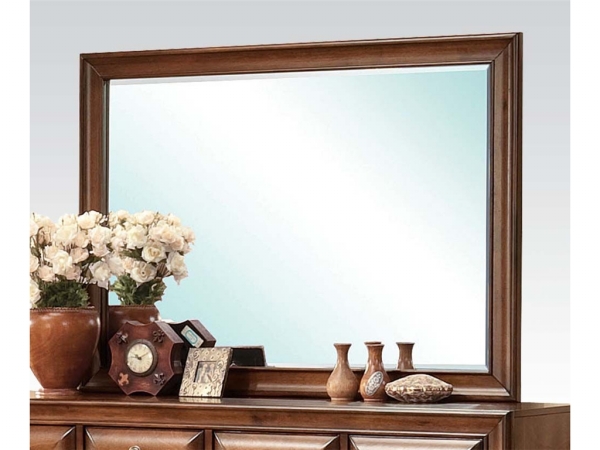 Bring polished style and refined elegance to any bedroom with this lovely dressing chest mirror. A beveled edge frame in a warm brown cherry wood finish is the perfect complement to the pristine mirror. Perfect for your bedroom prep area! Features