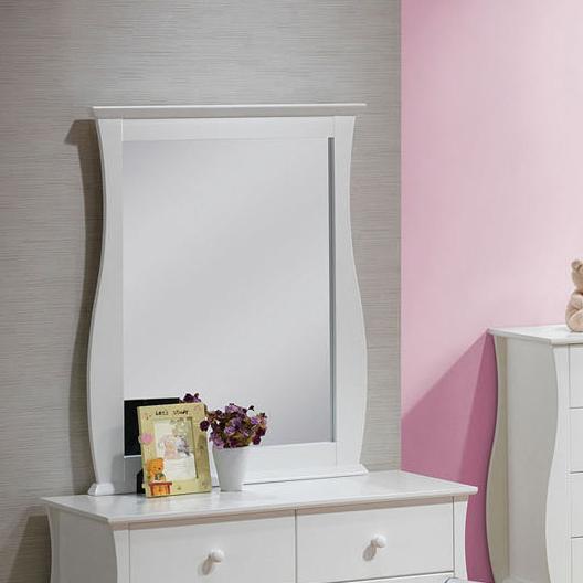 Give your child's bedroom a fun youthful accent with this dressing chest mirror design. Crown detailing and a wave panel design add unique visual interest while the white wood finish is bright and youthful. Pair with the dresser for a functional storage space and morning prep area. Features
