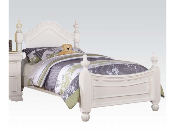 The Acme Classique Youth Twin Size Bedroom set in white finish reflects classic Louis Philippe styling with step-up look all showcased in raised bead detail decorative finials and bun feet.Also available in full size.The detailed hardware drawers knobs can be used for more storage space. Features