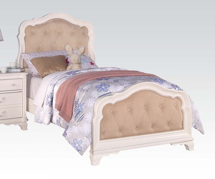Ira romance youth full bed reflects all things for the princess in your life.Starting with Ivory Pearl finish on bed is combined with brown button tufted top.The decorative carving goes throughout all the set with shaped feet.All Princess would love the elegance and styling found in this collection. Features