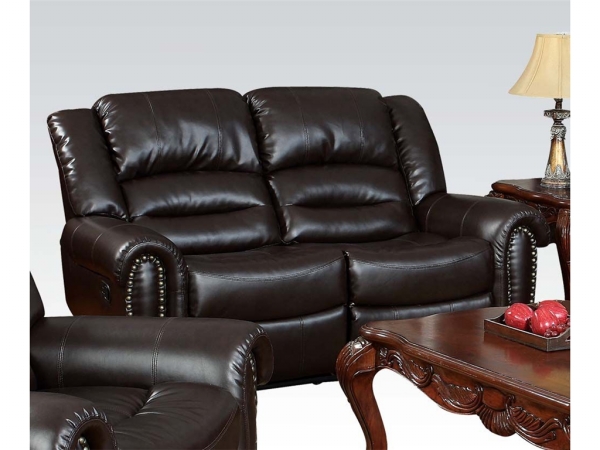 Sink into great comfort of the Ralph Brown Bonded Leather Motion Loveseat with overstuffed bonded leather upholstery in charming brown you can. It also featuring nailhead roll arm extra padded back hand latch recliner and cleans up easily. The Acme Furniture Ralph Collection is excellently designed for everyday living purposes. Features