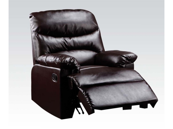 This remarkable Arcadia Bonded Leather Recliner - Acme Furniture brings unsurpassed comfort and casual style into your living or family room. The Arcadia recliner is designed for exceptional comfort at appropriate price and features espresso bonded leather for comfort and style. Plush bonded leather upholstery in espresso color makes your room cozy and stylish. A smooth seat cushion provides relaxation from neck to toe with an easy to reach external handle for operating the reclining mechanism. Overstuffed pillow arms as well as generous padded seat back provide you with support and comfort. Features