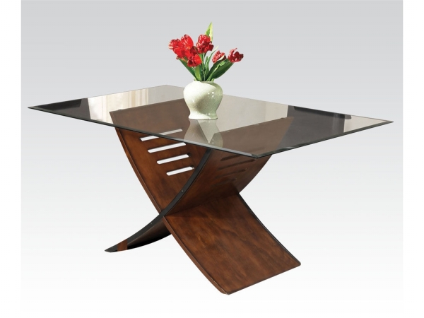 If you want to create a stylish and elegant at the same time the dining room you should start with this wonderful dining table. It is part of Trava collection. This table is designed in modern style. It features sleek glass top. Base consist of two criss-cross legs. Base is made in cherry finish. Minimalistic design will be decoration for your room. Features