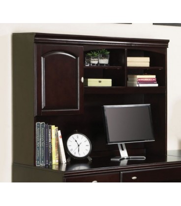 This stunning and elegant Cape Desk Hutch in Espresso is a wonderful piece that easily solves your storage problems in the office or home office. The hutch offers rich Espresso finish 4 open storage shelves and a door cabinet all accented with a beautiful sleek design. Add this hutch from to the office desk this collection to form a complete ensemble that will provide you with maximum working atmosphere and comfort in your home or office. Features