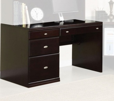 This sumptuous Cape Office Desk in Espresso will be a perfect addition to enhance your home office decor. The desk boasts rich Espresso finish 3 storage drawers sliding keyboard tray and sleek design. Add hutch from this collection to form a complete ensemble that will provide you with maximum working atmosphere and comfort in your home or office. Features
