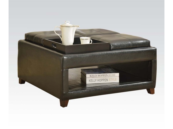 This Gosse Collection Reversible ottoman with trays also has an open shelf for easy storage comes in dark brown PU leather