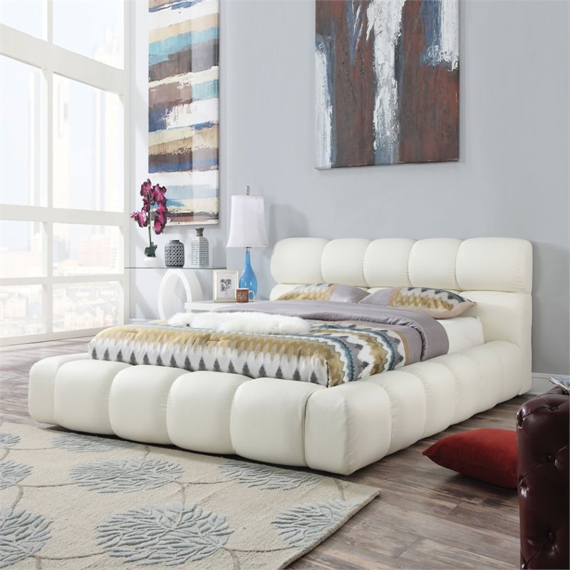 | ACME Furniture - Beds - 25047EK - The collection Acacia is modern desing. The headboard, footboard and side rails are padded and upholstered hard. Giving your bedroom a whole new look. Finish: IvoryMaterial: PU, Particle BoardBox Spring Not ReqiredPadded BedSpecifications:Overall Product Dimensions: 95H x 103W x 95DProduct Weight: 213 lbs