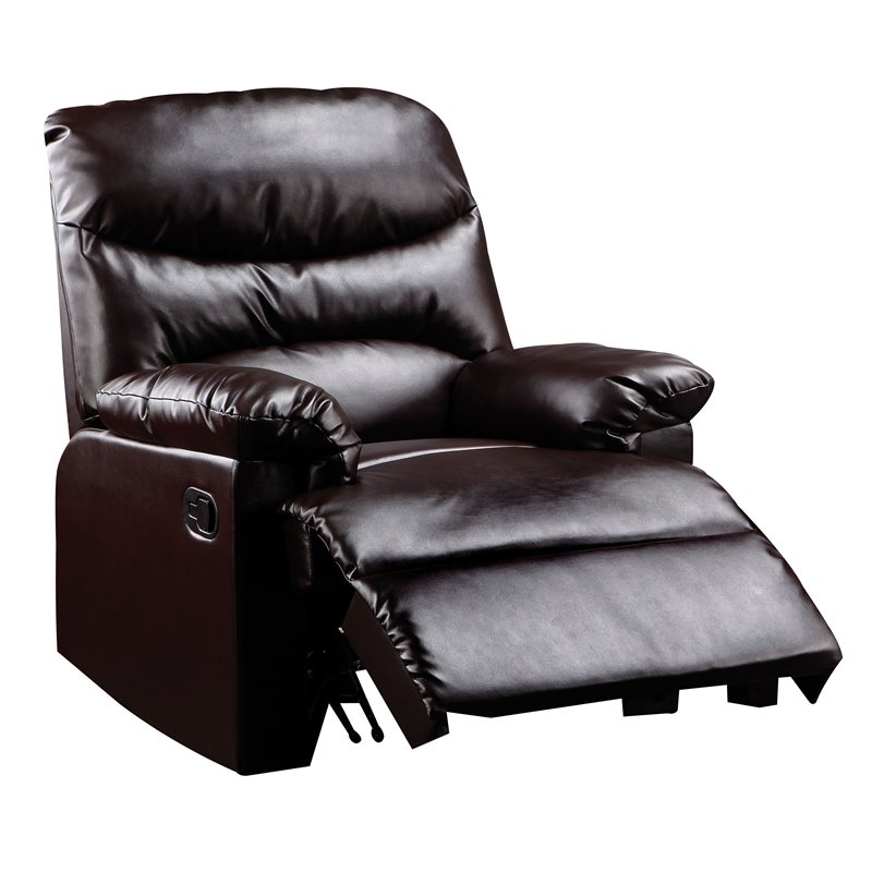 | ACME Furniture - Recliners - 59011 - The lovely Arcadia recliner offers comfort, style and value for any home. A smooth PU seat cushion provides relaxation from seat to toe with an easy to reach external handle for operating the reclining mechanism. Finish: BrownMaterial: PU, Wood (Solid), Polywood, Foam (CA 117), Metal Reclining MechanismEasy to Assemble KD mechanismFully ReclinedSpecifications:Overall Product Dimensions: 40H x 35W x 35DProduct Weight: 69 lbsweight capacity: 300Lbsseat height:20
