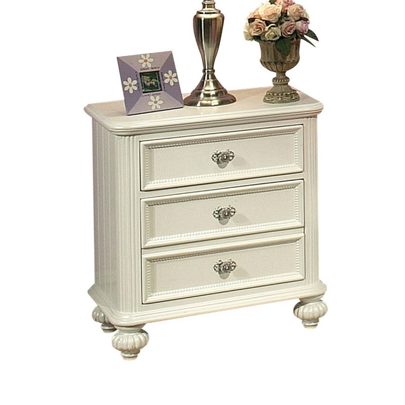 | ACME Furniture - Nightstands - 30009 - Athena collection nightstand is perfect for your favorite girl. Each drawer is accentuated with decorative glass knob hardware for the perfect touch of shine. Little details like turned feet, decorative round glass knobs, wood paneling and traditional moldings add sophistication to the entire design. Finish: WhiteMaterial: Pine, MDF (No Ven), PolywoodGlide Center Metal DrawersDovetail French Front & English BackFelt lined Top DrawerSpecifications:Overall Product Dimensions: 28H x 26W x 16DProduct Weight: 40 lbs