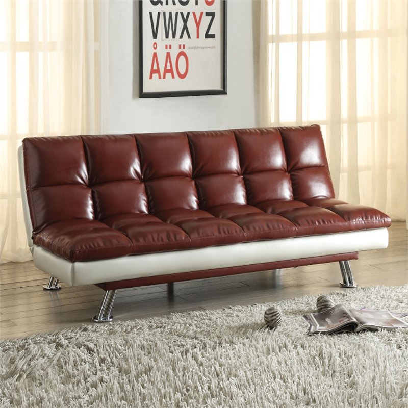 | ACME Furniture - Futons - 57247 - The Baka Adjustable Sofa Collection features tufted faux leather cover with chrome legs, offering a sophisticated and modern look to any room. Includes Memory Foam padded seat cushions, and it's Adjustable feature allows to switch from a sit to sleep position by simply lifting the light weight seat cushion; a quick and easy transformation into a ready to use bed. You will not find a better set that fits both style and comfort for the price. Finish: Dark RedMaterial: PU, Foam, Memory Foam, Metal LegMemory Foam FillingFaux LeatherTufted Seat & BackMetal LegSpecifications:Overall Product Dimensions: 33H x 76W x 35DProduct Weight: 82 lbsseat height:16