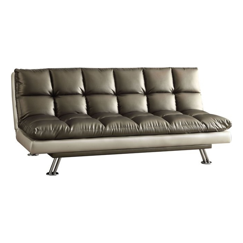 | ACME Furniture - Futons - 57245 - The Baka Adjustable Sofa Collection features tufted faux leather cover with chrome legs, offering a sophisticated and modern look to any room. Includes Memory Foam padded seat cushions, and it's Adjustable feature allows to switch from a sit to sleep position by simply lifting the light weight seat cushion; a quick and easy transformation into a ready to use bed. You will not find a better set that fits both style and comfort for the price. Finish: Dark SilverMaterial: PU, Foam, Memory Foam, Metal LegMemory Foam FillingFaux LeatherTufted Seat & BackMetal LegSpecifications:Overall Product Dimensions: 33H x 76W x 35DProduct Weight: 82 lbsseat height:16