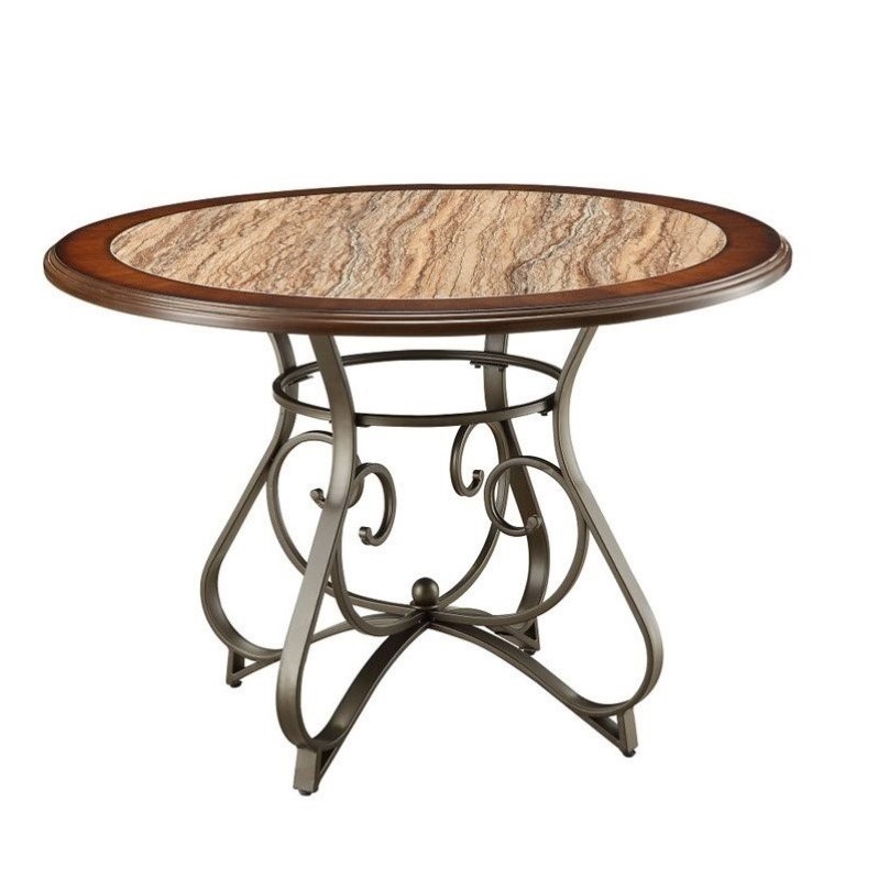 | ACME Furniture - Dining Tables - 7064BARRIEDTKIT - A fanciful dining table that greatly shines with its cherry oak and faux marble table top. The metal framing and legs are enhanced further by the graceful accent designs. Cherry Oak and Dark Bronze Finish; Made of metal and faux marble veneer; Round shaped. Specifications:Overall Dimensions: 30 H x 45 W x 45 D; Overall Product Weight: 50.6 lbs.
