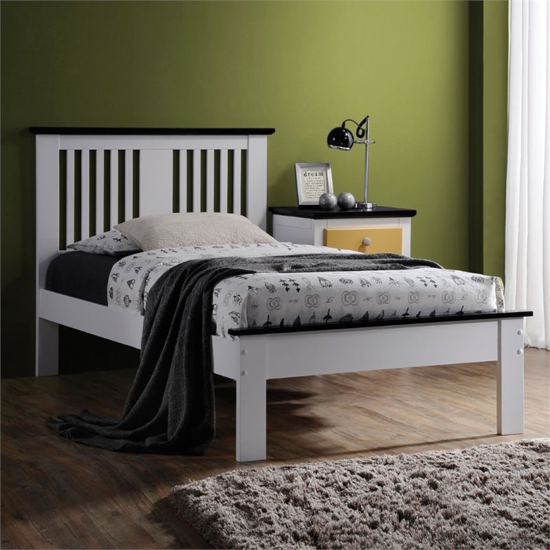 | ACME Furniture - Beds - 25453F - The Brooklet Collection Bed features expert construction of solid woods and veneers. High Panel Headboard with slatted design and low profile footboard, both with contrasting colorful trim. The bed is complemented with a slat system foundation that allows it to be used with or without box spring. Finish: White & BlackMaterial: Poplar WoodSlatted Panel Headboard w/Contrast Top Trim13 SlatsLow profile footboardAvailable in 2 ColorsSpecifications:Overall Product Dimensions: 41H x 79W x 59DProduct Weight: 58 lbs