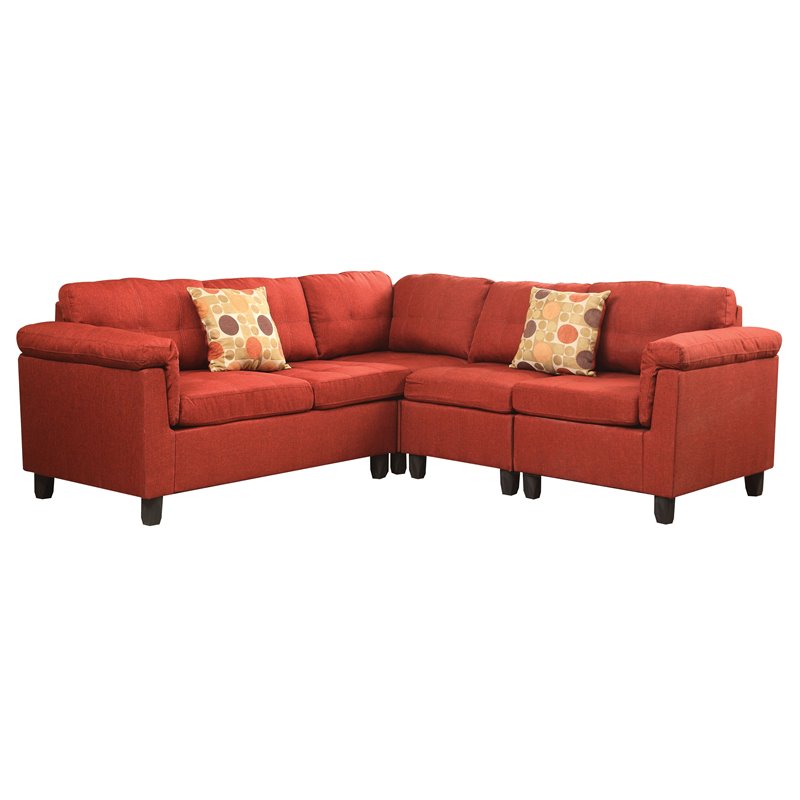 | ACME Furniture - Sectionals - 51545 - The Cleavon sectional sofa set boosts transitional style, update your living room with charming style and comfort. Features linen fabric upholstery, tufted back and seat cushion, pillow armrest, two accent pillows. The KD design easy for assembling and the reversible function will allow this sectional to fit any living room space. Finish: RedMaterial: Fabric, Wood Frame, Foam (TB117)Reversible2 Accent Pillows IncludedTufted Back & SeatSeat w/Pocket CoilPlastic LegSpecifications:Overall Product Dimensions: 34H x 54W x 32DProduct Weight: 177 lbs