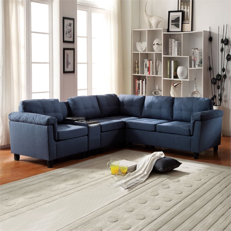 | ACME Furniture Cleavon Reversible Linen Sectional with Console in Blue |