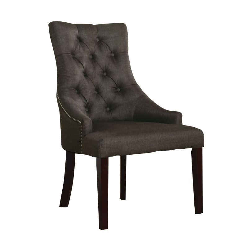 | ACME Furniture - Dining Chairs - 59196 - The Drogo Collection Chairs offers beautiful details with a versatility that enhances any dining area. This lovely chair features button tufted back with nail-head trim details, padded seat cushion and wooden tapered legs in a warm Dark Finish. Finish: Gray & WalnutMaterial: Fabric, WoodButton TuftedPadded Seat & Back: Fabric CushionWooden Tapered LegSpecifications:Overall Product Dimensions: 38H x 25W x 27DProduct Weight: 41 lbs