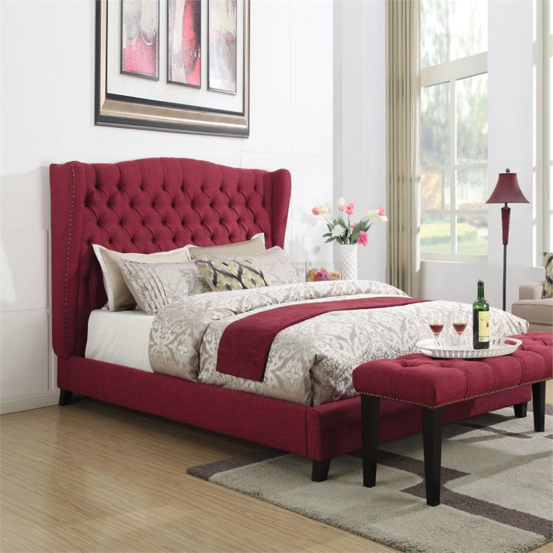 | ACME Furniture - Beds - 20890Q - The Faye collection combines traditional elements with modern design. Features button tufted headboard in red linen fabric. It's wingback headboard design and espresso tapered leg creates a luxurious atmosphere to fit any decorations. Matching Bench Sold separately. Finish: RedMaterial: Linen, CA Foam (TB117)Upholstered BedButton Tuftednail-head TrimWingback HeadboardSpecifications:Overall Product Dimensions: 60H x 96W x 69DProduct Weight: 124 lbs