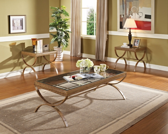 Acme Furniture Industry 80080 Quintin 3 Pieces Coffee-End Table Set in Gold