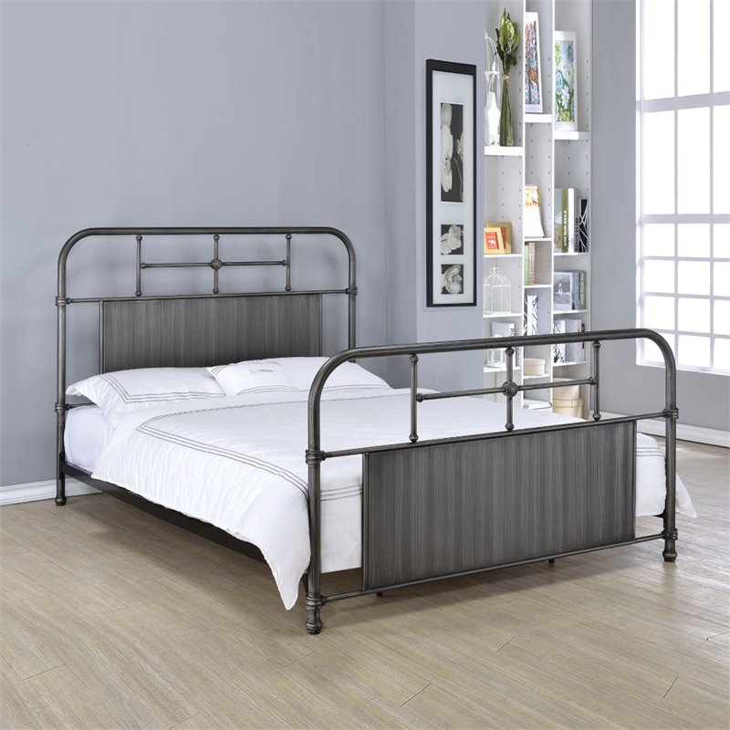 | ACME Furniture - Beds - 25123F - The Ivey Collection is admirable with graceful lines and a traditional silhouette. The Ivey Bed is enhanced by solid center panels in gray and detailed castings. This bed is antique black finish. Finish: Antique BlackMaterial: MetalHigh Profile HeadboardHigh Profile Footboard4 slats and support legsDurable Metal FrameSpecifications:Overall Product Dimensions: 52H x 80W x 58DProduct Weight: 70 lbs