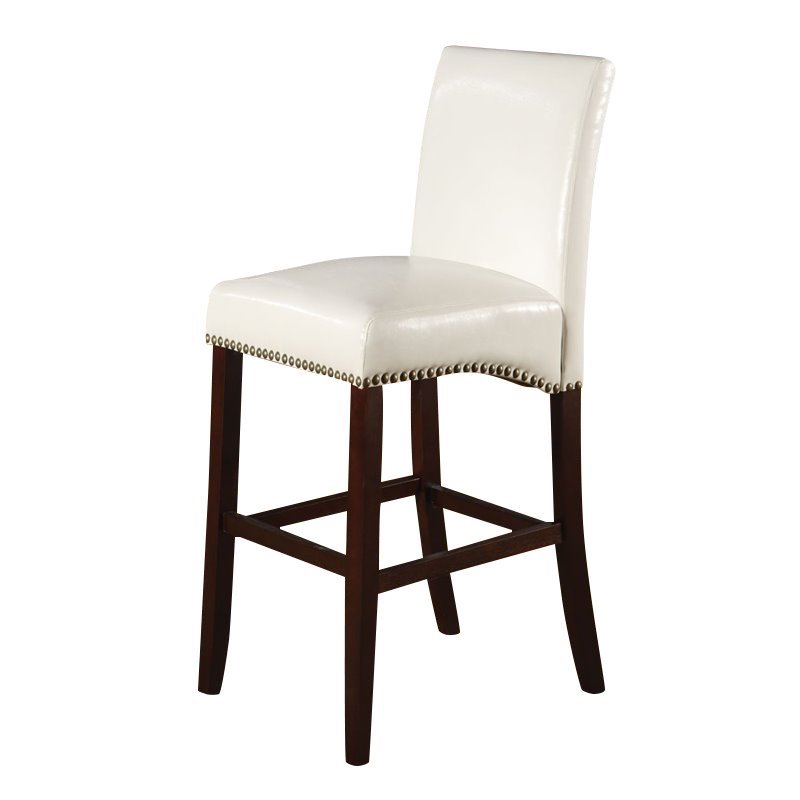 | ACME Furniture - Bar Stools - 96170 - With Jakki bar chairs in contemporary style, you will add a breath of fresh and elegant air to your kitchen or dining room decor. The white bycast leather seat and back with nailhead bottom accent trim will stand out as bold and stylish. Finish: WhiteMaterial: Bycast PU, Wood, FoamPadded Seat & Back Cushion: PUNail-head Trim on seat cushion baseSpecifications:Overall Product Dimensions: 45H x 19W x 22DProduct Weight: 20 lbsseat height:30