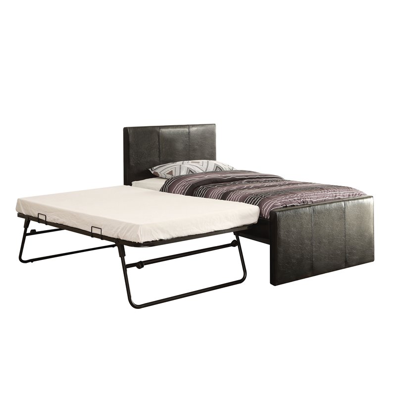 | ACME Furniture - Beds - 30480T - The Jandale sleek and contemporary design is the perfect match for any bedroom. This set includes a twin panel bed, and twin trundle bed with pop-up mechanism. (Mattress Not included) Finish: BlackMaterial: PU, Wood Frame • Trundle: MetalPadded BedPanel HeadboardLow Profile FootboardTrundle Included with Pull-out & Pop-Up MechanismSpecifications:Overall Product Dimensions: 42H x 79W x 56DProduct Weight: 91 lbs