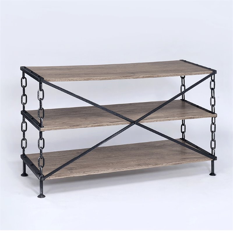 | ACME Furniture - TV Stands - 91224 - Bring the feeling of a vintage piece to your home with this rustic Jodie side pier. An open, airy design gives this piece the versatility to be placed where storage demands are high. With five spacious shelves for storing media components, books, magazines. Pair them up with the Jodie TV stand for a complete entertainment center piece. Finish: Rustic Oak & Antique BlackMaterial: Particle Board, Melamine Paper, Metal TubeRectangular TV Stand w/3 Wooden ShelvesOpen ShelvingChain Metal FrameSpecifications:Overall Product Dimensions: 31H x 48W x 18DProduct Weight: 79 lbs