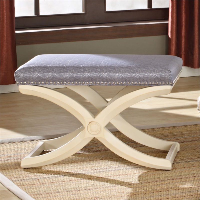 | ACME Furniture - Living Room Benches - 96196 - This elegant Khloe bench is perfect for stylish and refined home space. Its construction consists from the durable wooden frame and features in padded seat cushion with nail-head trim. Finish: Antique White & Blue SeatMaterial: Schima Superba, CA Foam, Fabric,Padded Seat Cushion: Blue FabricNail-head TrimWooden X BaseAssambledSpecifications:Overall Product Dimensions: 19H x 28W x 18DProduct Weight: 23 lbs
