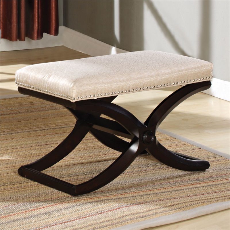 | ACME Furniture - Living Room Benches - 96197 - This elegant Khloe bench is perfect for stylish and refined home space. Its construction consists from the durable wooden frame and features in padded seat cushion with nail-head trim. Finish: Dark Cherry & Pearl SeatMaterial: Schima Superba, CA Foam, Fabric,Padded Seat Cushion: Pearl FabricNail-head TrimWooden X BaseAssambledSpecifications:Overall Product Dimensions: 19H x 28W x 18DProduct Weight: 23 lbs
