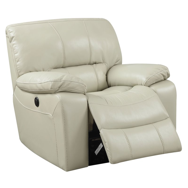 | ACME Furniture - Recliners - 59342 - The Kimberly power recliner offers comfort, style and value for any home. A smooth leather-aire upholstery provides relaxation from seat to toe with an easy to reach powered control for operating the reclining mechanism. Update your living room furniture with this comfortable, power reclining chair its great for any space and makes it perfect to relax, take a nap or read a book. Finish: Cream; Material: Leather-Aire, Frame: Polywood, Foam, Metal Reclining Mechanism w/Power Function; Power Motion: Reclining Function; Tight Back & Seat Cushion; Arm: Tight Pillow Top; Arm: Tight Pillow Top. Specifications:Overall Product Dimensions: 40H x 44W x 37D; Product Weight: 96 lbs; seat height:19; Weight Capacity: 275 lbs.